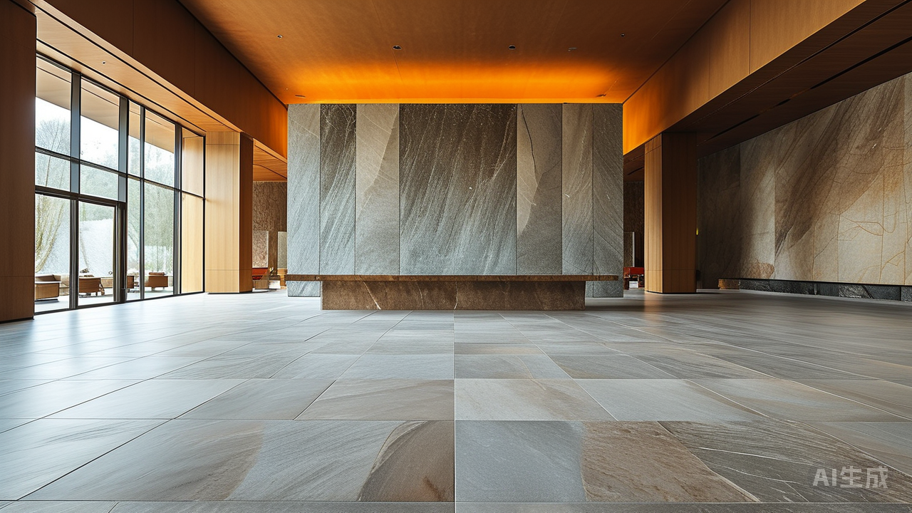 大板瓷砖铺贴案例,感受一气呵成的磅礴气势步入空间,视线瞬间被地面与墙面浑然一体的瓷砖所捕获。这便是大板瓷砖铺贴带来的视觉震撼——它打破了传统小块瓷砖的琐碎分割,以完整的界面塑造出磅礴开阔的气势。 一气呵成的整体感 传统铺贴中密布的缝隙被减少到极致,大板瓷砖以近乎无缝的衔接,让地面宛若一整块完整的岩石,墙面如平滑的玉璧。这种极致的连贯性,赋予了空间强烈的延伸感与整体性。无论是应用于开阔的客厅,还是延伸至开放式厨房与餐厅,大板瓷砖都如同一位高明的指挥家,将不同功能区统合于同一恢弘的乐章之下,气韵流畅,毫无阻滞。