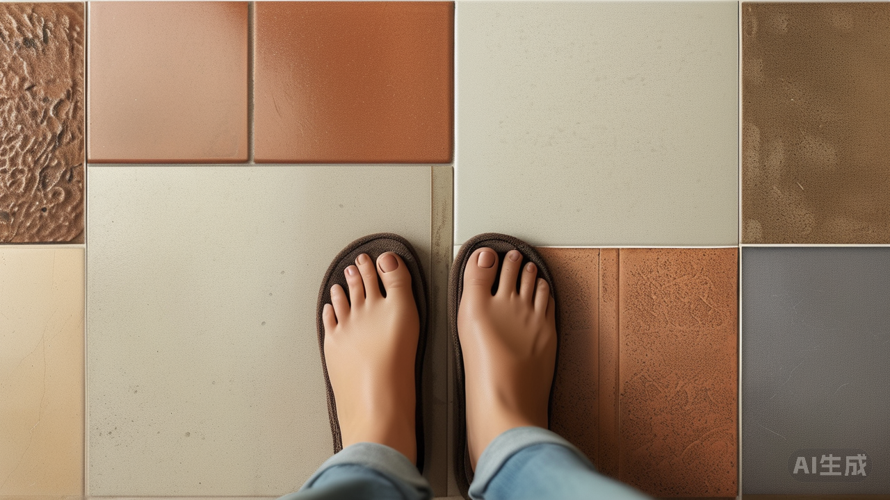 那么,如何通过这一方瓷砖的选择,真正提升生活的品质与触感? 首先,是学会用“脚”去选择,关注触感胜过视觉。在挑选瓷砖时,我们常被绚丽的图案所吸引,却忽略了它最本质的属性——脚感。光洁如镜的亮面瓷砖固然显得明亮,但在湿滑的卫浴间或需要静谧的卧室,一块带有细微凹凸质感、具备防滑功能的哑光砖或柔光砖,带来的是一份踏实的安全感。尤其在冬日,那瞬间接触的温润,远胜于亮面砖的冰冷刺骨。这种由触觉直接传递的舒适,是任何华丽图案都无法替代的质感之源。