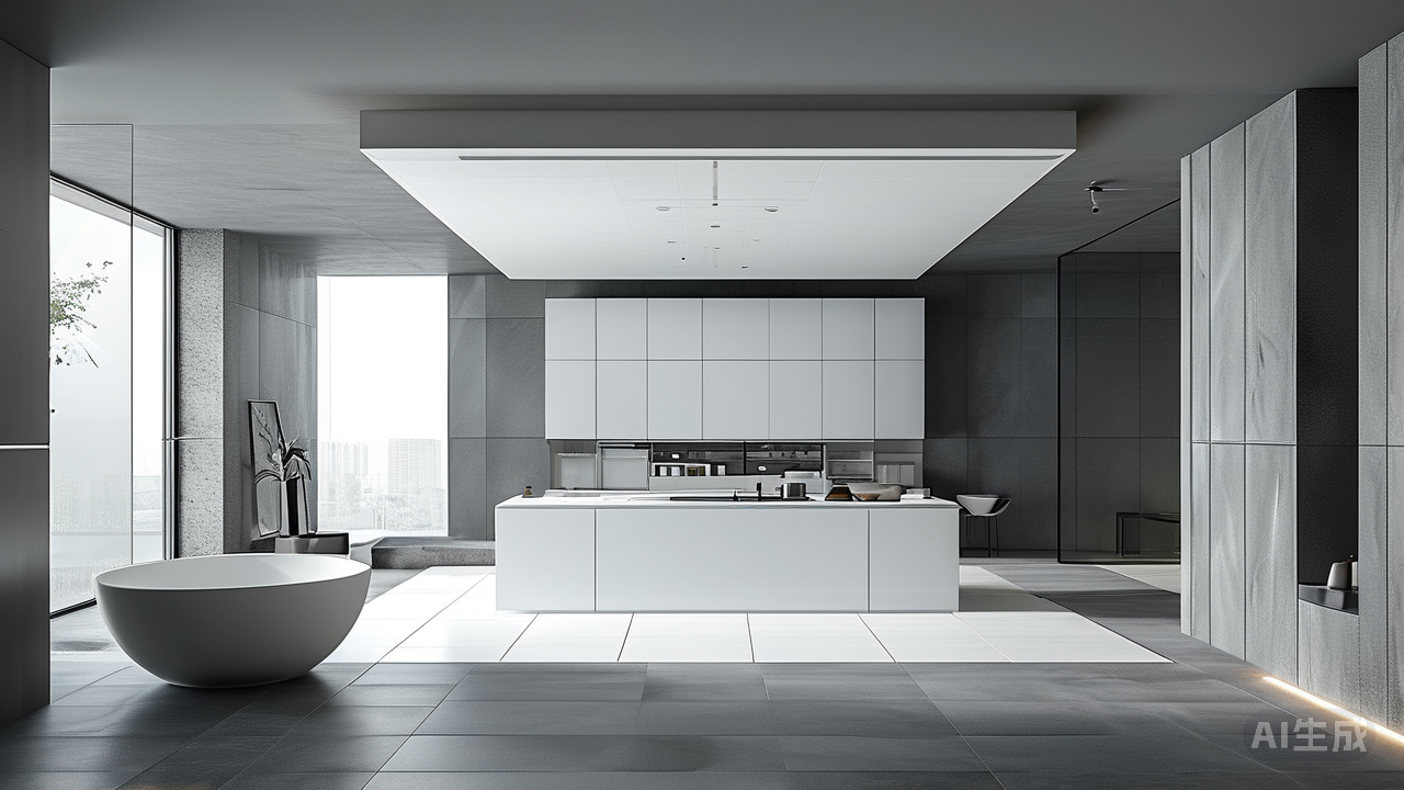 最后,我停驻在现代主义的极简空间。这里没有多余的装饰,只有纯粹的色块、干净的线条、水泥质感的灰调。一片看似普通的白色瓷砖,其平整度、光洁度、耐磨性都蕴含着科技的结晶。当下的审美,似乎从外放的繁复转向了内敛的简约,更注重材质本身的质感、空间的关系与个体的体验。小小瓷砖,化身为构建生活哲学的基石。